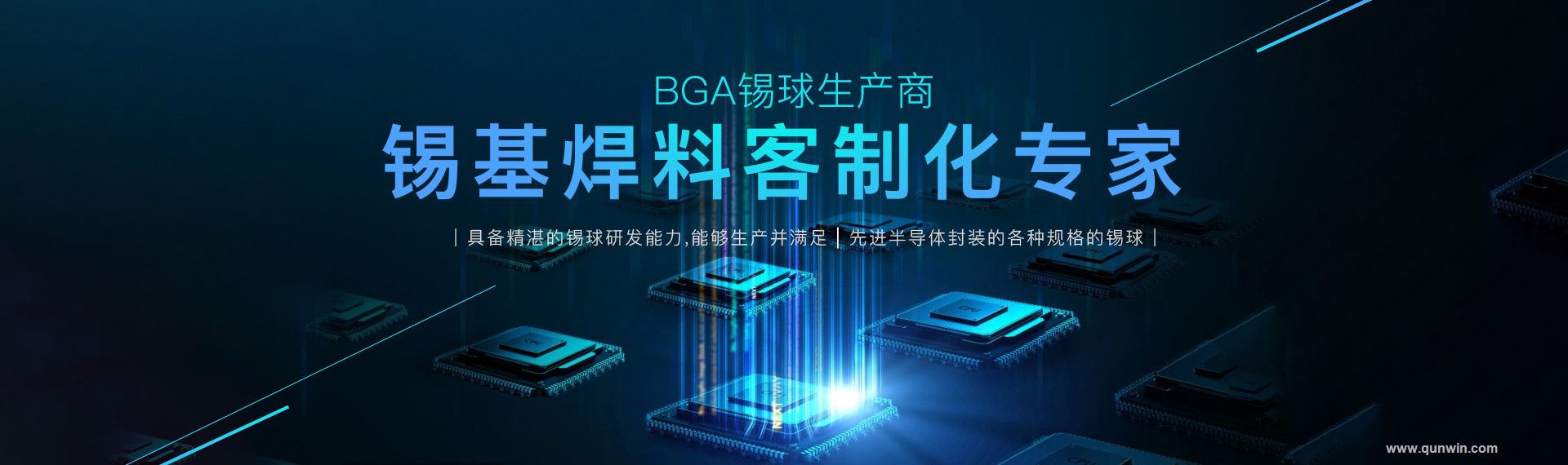 重慶群崴電子材料有限公司是一家專業(yè)從事電子封裝材料研發(fā)和生產(chǎn)的國家高新技術(shù)創(chuàng)新型企業(yè)。公司擁有多項(xiàng)相關(guān)核心技術(shù)專利,是國內(nèi)霧化成型BGA錫球技術(shù)專利持有人。其中0.25mm 以下的BGA 錫球被列為國家863(“863”計(jì)劃)重點(diǎn)項(xiàng)目之一。